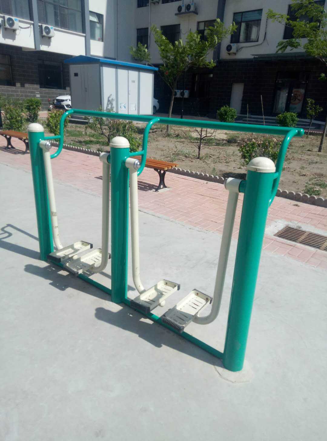 室外健身器材又叫室外路徑,一般常用的有:雙人漫步機,坐蹬器,肩關節康復器、轉腰器、棋牌桌、腹肌板等。